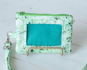 Green floral Fabric ID Badge Holder with detachable Lanyard