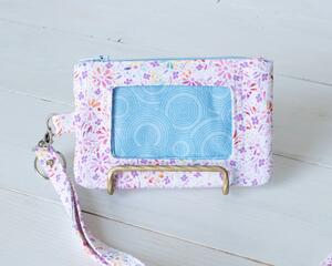 Purple Floral ID Wallet, Badge Holder with detachable Lanyard