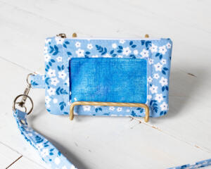 Blue Floral Fabric ID Badge Holder with detachable Lanyard